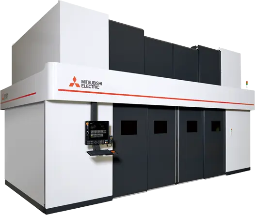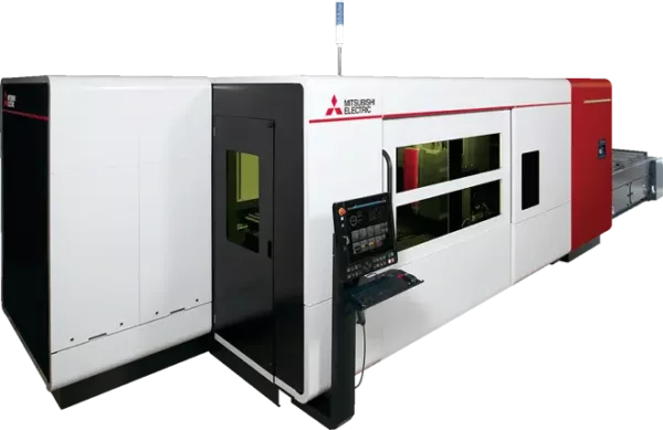 The Mitsubishi FV fiber laser combines a double-rail gantry motion system and 4.0G H-axis acceleration for unmatched speed and precision in cutting. Access and fixturing flexibility are key for 5-axis machines, and the FV delivers on both, with a split design table and overhead access for large parts. All major components, including the oscillator and frame are made by Mitsubishi, ensuring seamless service and support from a single source. The FV integrates Mitsubishi’s latest advancements in machine design, CNC control, and automated material handling technologies, offering the fastest processing in Mitsubishi Electric’s history.