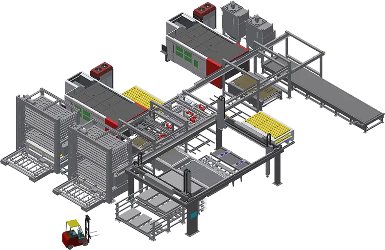 The Rapid Series’ unmatched speed, expandability, and true lights-out reliability opens the door to confidently grow and service a multi laser line. From simple single laser systems to triple laser lines outfitted with nest conveyors, AGV’s, or part sorting, Rapid automation is fully modular and can be configured to fit your shop’s needs and accommodate for future growth.