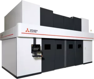 Mitsubishi offers two multi-axis lasers. The VZ series is a bulletproof CO2 Model ideal for short run environments with its easy fixture and table access. The FV is a robust 5-axis fiber that has the flexibility to handle flat plate or 3D and oversized fixtures.